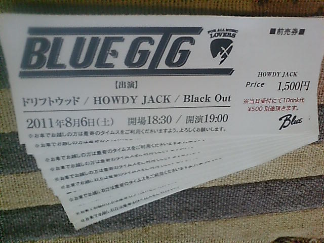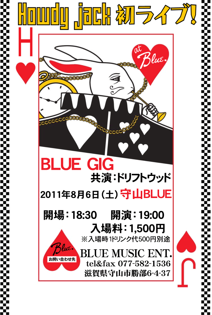 【出演】 ドリフトウッド / Howdy Jack / Black Out 開場 18:30 / 開演 19:00 Price ¥1,500- (1Drink代¥500- 別途) ~滋賀・守山*BLUE~ Howdy Jackの出番は、19:45頃です。 PR